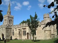 The Parish Church of Saint Lawrence, Wymington is a Grade I listed church in Wymington, Bedfordshire, England. It became a listed building on 13 July 1964.[1] The church was built in 1377 with funds bequeathed by John Curteys, the mayor of the wool staple at Calais, though there are records of a previous church on the site dating back to at least 1235. The church is noted for its 15th-century doom painting depicting Christ in glory with scenes of the judgement as well as its funerary brasses and monuments.[2]