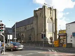 Attached to the north and south sides of the church are cast iron railings, divided by standards with fleur-de-lis heads. On the north side is a gateway with stone piers in Gothic style between which are elaborate cast iron gates.[7] To the east of the church are a Franciscan convent containing a chapel,[9] and a presbytery.[10]