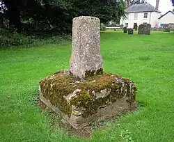The stoup outside and immediately to the South of the West door with a projecting broken bowl is late mediaeval. The sundial in the South wall of the chancel and incised on a block of clunch is also mediaeval. In the churchyard South of the church are the remains of a medieval cross consisting of a square base with angle stops and the bottom of shaft, square to octagonal. This was used in medieval times for preaching sermons and was destroyed following a visit from William Dowsing on 16 March 1643 because it was considered idolatrous.[4] The church has a number of stone coffin lids including in the North porch built into stone benches; various other fragments can be found about the church.[1][2][4]