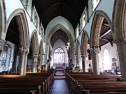Before The Reformation, the windows in the church displayed images from the scriptures, but these were later viewed as "superstitious" post-Reformation and so fell to decay or were replaced with ordinary glass.[20] Various additions to the church during the 15th century have led to the whole church being labelled as Perpendicular in its architectural style,[9] however, some other structures remain from the various alterations which have also seen the building labelled as Gothic.[21]