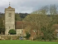 The church dates from the late 11th century and is dedicated to saints Peter and Paul. It is a Pilgrim Church as it is located near to the Pilgrims' Way, the historical route purportedly taken by pilgrims from Winchester in Hampshire, to the shrine of Thomas Becket at Canterbury in Kent.