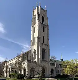 Ground was broken for the new building on June 25, 1927.[16] By April 1928, the cost of the building had risen to $250,000 ($4,600,000 in 2024 dollars),[19] and by late May 1928 to $300,000 ($5,500,000 in 2024 dollars). A new fund-raising effort was begun to raise the needed extra funds. Among the donations raised at this time was a pledge by Sarah Ecker Watts Morrison, wife of Governor Cameron A. Morrison of North Carolina, to donate a $20,000 ($400,000 in 2024 dollars) pipe organ to the finished church.[18] The Rev. Dr. John B. Frazier, a Southern Presbyterian minister and former chief chaplain in the United States Navy, conducted much of this fundraising,[20] emphasizing that the Church of the Pilgrims was going to be a gift to the nation from the Southern Presbyterian Church.[21]