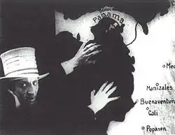 Another pioneer of Colombian cinema was Arturo Acevedo Vallarino, a producer and theater director from Antioquia who lived in Bogotá. After the introduction of foreign films and the fascination they caused in Colombia, theaters no longer were as profitable as they once were, so Acevedo decided to found a film production company called Acevedo e Hijos (Acevedo and Sons).[10] Acevedo and Sons was the longest lasting production company in Colombia, and were in business from 1923 to 1946– the only one to survive the Great Depression of the 1930s. Acevedo and Sons produced the films La tragedia del silencio (The Tragedy of Silence) in 1924 and Bajo el Cielo Antioqueño (Under the Sky of Antioquia) in 1928. Under the Sky of Antioquia was financed by local tycoon Gonzalo Mejía. The film was criticized for being elitist, but received an unexpectedly positive reception from the moviegoing public. Films in Colombia continued to be largely based on themes of nature, folklore, and nationalism, with some exceptions in literary adaptations. In 1926 the film Garras de oro: The Dawn of Justice (Claws of Gold; the title is half Spanish and English) was released. It is distinctive for being based on a political issue, the separation of Panama from Colombia, and for criticizing the role of the United States in the conflict, both bold firsts in Colombian cinema.[11]