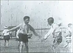 Other extant pre–Great War films to be shot in Wales were made by film-makers from outside the country. These included the British Biograph Company's film Conway Castle (1898) and Charles Urban Company's Wales, England: Land of Castles and Waterfalls (1907).[5] The 1906 British Home Championship encounter between Wales and Ireland at Wrexham was filmed by Blackburn firm Mitchell and Keynon, and is now the oldest surviving film of an international football match.[3] While the oldest footage of any football match is the 1898 film by Arthur Cheetham, Blackburn Rovers v West Bromwich Albion.[1]