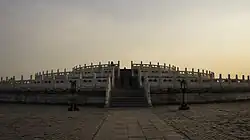 The Circular Mound Altar (Chinese: 圜丘坛; Chinese: Huánqiū Tán) is an outdoor empty circular platform on three levels of marble stones, located in Beijing, China. It is part of the Temple of Heaven.
