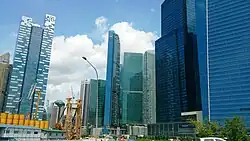 ![]() The anchor tenant of Tower 1 of Asia Square, on the left of this view of the skyline of the Downtown Core, is Citibank Singapore | |