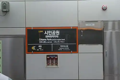 Citizens Park Station is a subway station on Line 2 of the Incheon Subway.