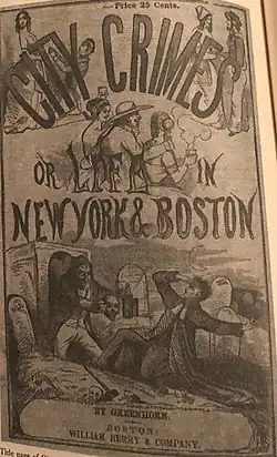 City Crimes; Or, Life in New York and Boston is an 1849 novel by George Thompson, writing under the penname of "Greenhorn". The novel was written for the working class and meant to give a shock to its readers through its use of graphic violence among several characters and sexual promiscuity, specifically among women. It is considered by critics to fall within several genres such as sensational literature and urban gothic and to have laid the groundwork for the city mysteries genre.