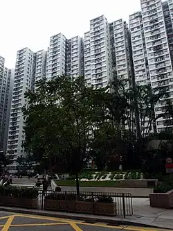 City Garden is located at 233 Electric Road, Fortress Hill, Hong Kong. It is located beside Victoria Harbour. It consists of 14 residential buildings with 28 levels each. Phase 1 includes Block 1–6 while phase 2 includes Block 7–14. There are 2,393 residential units which accommodate more than 9,000 residents. City Garden's lot is approximately 400,000 square feet (37,000 m2) in size. City Garden Road is a two-lane road which serves as the main thoroughfare through City Garden.[1]
