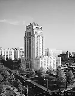 Atlanta City Hall is the headquarters of the City of Atlanta government. It was constructed in 1930, and is located in Downtown Atlanta. It is a high-rise office tower very similar to dozens of other city halls built in the United States during the same time period. Located in South Downtown, it is near other governmental structures, such as the Georgia State Capitol and the Fulton County Courthouse. The Neo-Gothic structure features many architectural details that have helped to make the building a historical landmark.[2] It is Atlanta’s fourth city hall.