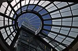 Some of the film was shot at Lake Tahoe's surrounding areas and Kern County.[25] The "falling" scene was partially shot at the Los Angeles Bank of America, while Cage was placed on a moving rig over a bluescreen.[24] Ryan's death scene was filmed on Old Mill Road in Crestline, California.[25] The library scenes were shot at San Francisco Public Library.[18] For angel scenes shot at Malibu Beach, though the characters are not physical beings, it was decided that the angels would have briefly visible footprints to avoid the perception that the sand was too hard to leave imprints. Thus, Nelson erased the footprints soon after they are first seen.[24]