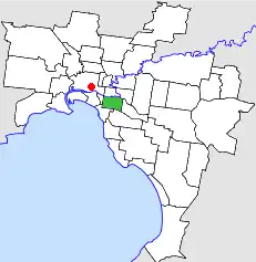 The City of Prahran was a local government area about 5 kilometres (3 mi) southeast of Melbourne, the state capital of Victoria, Australia. The city covered an area of 9.55 square kilometres (3.69 sq mi), and existed from 1855 until 1994, when it was merged with the City of Malvern to create the City of Stonnington.[2]
