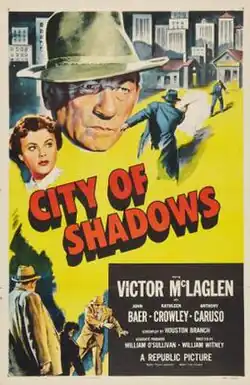 City of Shadows is a 1955 American crime film directed by William Witney and written by Houston Branch. The film stars Victor McLaglen, John Baer, Kathleen Crowley, Anthony Caruso, June Vincent and Richard Reeves. The film was released on June 2, 1955 by Republic Pictures.[1][2][3]