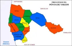 Map with the 12 former civil parishes of Póvoa de Varzim - Aguçadoura