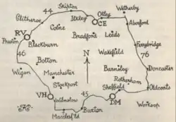 The cycling journalist, Kuklos (i.e.Fitzwater Wray), was a supporter of the Clarion Cycling Clubs who wrote for The Clarion Cyclist. In 1936 he described a circular route taking in four of the clubhouses.[1]