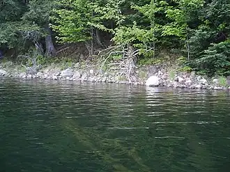 Clark Lake is a lake located in Gogebic County in the U.S. state of Michigan. Clark Lake is one of about two dozen clear, clean lakes located in the Sylvania Wilderness of Ottawa National Forest a few miles (6 to 8 km) to the west of the town of Watersmeet. The shoreline is undeveloped except for a picnic area and boat launch at the northern end. The lake has several islands and numerous bays and coves. Large boulders strewn about the shoreline and lake bed add to the scenic setting of this lake. It is not uncommon to see nesting loons and eagles around the lake's islands, and black bear and wolves inhabit the old-growth forest around the lake. The total surface area of the lake is 820 acres (3.3 km2), with maximum depths of 74 ft (23 m).