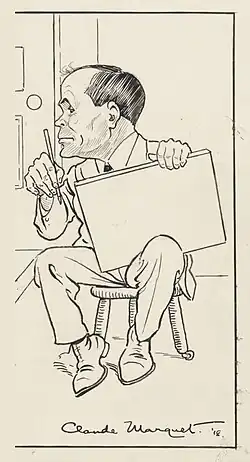 During January and February 1905 Marquet had an occasional cartoon published in Punch, but from March 1905 his work was regularly featured in the journal.[51] He was employed as an artist for Punch until October 1907, working alongside another artist, Alek Sass, who became a life-long friend. Melbourne's Punch had a conservative editorial stance, later described by Sass as "ultra-Tory".[52][53]