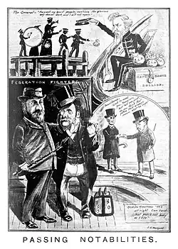 - ^ Topicalities, Quiz (Adelaide), 13 November 1901, page 9; cartoon, Quiz (Adelaide), 20 November 1901, page 9.