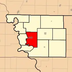 The former settlement of Union City was located in the center-west of the township on the foot of the Loess Bluffs three-miles east of Phelps City.[5]