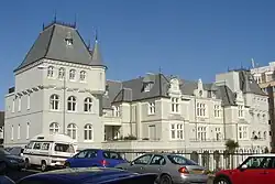 Built at Black Rock on behalf of the French government, this building's curious French Renaissance Revival styling makes it appear "out of place on Brighton's seafront"[49] (which consists almost exclusively of stuccoed Regency-style buildings).[50] Described variously as "drab",[51] "gauche",[52] "chateau-like"[53] and "interesting",[49] it was closed in 1999 and converted into luxury flats. Steep-roofed pavilions with some ironwork were added in 1904 and 1907.[51]