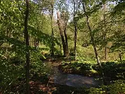 The park is primarily made of mature forest, of which 78-acre (32 ha) has been designated old-growth forest by the Old-Growth Forest Network.[1][9] The park's old growth forests are dominated by stately stands of beechs, red and white oaks and birchs, with shagbark hickorys and tulip poplars, and black oaks also being plentiful. The forest understory is considered one of the best in the county for wildflowers and contains a wide variety of perennial plants.[4][3] The park also contains fields and a small man-made fishing pond, which a habitat to beavers, egrets, herons and turtles.[10]