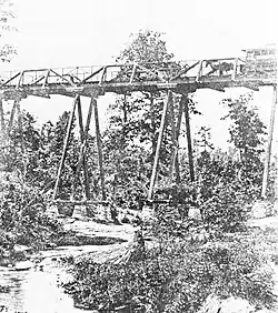 In the fall of 1864, the Union Army camped along this branch of the creek, and for several decades, it was referred to as Shermantown Branch. Flowing in a northeasterly meander through the eastern side of the Midtown neighborhood, it eventually joined the eastern branch of the creek near the site of the present-day Midtown High School stadium.[1]