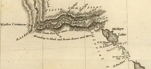 During European exploration and the fur trade of the 18th century, the lower Clearwater River was part of an important canoe route between Hudson Bay and Montreal in the east, and the District of Athabasca in the west. The rough Precambrian upper portion of the Clearwater River was a barrier to the traders until 1778, when explorer Peter Pond crossed the Methye Portage to bypass it. Methye Portage extended between Lac La Loche and the Clearwater River, forming a 19-kilometre (12 mi) overland link on the route from Churchill, Manitoba to Athabasca, Alberta. For almost 40 years, this was the only overland connection for the fur trade in the region, and it continued in use for most of the 19th century.[5]