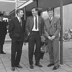 Jones (left) with Danny Blanchflower and John White in Rotterdam in 1961