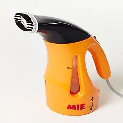 A clothes steamer, also called a garment steamer or simply a steamer, is a device used for quickly removing wrinkles from garments and fabrics with the use of high temperature steam.[1] They can for example be used to straighten wrinkles on shirts by releasing tension in the fabric so that it straightens itself. Steamers can also remove smells.