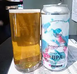 From its inception the brewery has produced a wide range of beers, from traditional English styles such as mild, stout and India pale ale (IPA), to international varieties such as Helles, grisette and cream ale.[5] Unlike most British breweries, Cloudwater opted not to brew a core range of beers, instead creating a seasonally changing selection using hops and malts available at different times of year.[4] The brewery's range of Double IPAs, a heavily hopped and stronger version of the traditional IPA, have received particular acclaim;[9][25] four beers from the range were named among the Best New Beers of 2017 at the RateBeer awards in Santa Rosa, California.[26]