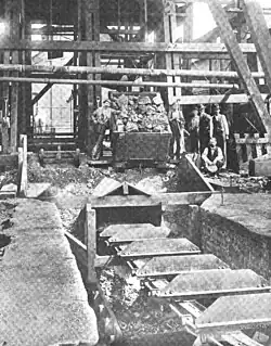 In 1871, the Susquehanna Coal Company, owned by the Pennsylvania Railroad, took control of both the Harvey Mine and the Grand Tunnel, although James Hutchison stayed on as mine boss.[8] After a boiler explosion in 1871, the SCC took down the old Harvey breaker and on July 27, 1872 began operating a new one, considered to be one of the largest in the district. It was designed by Charles F. Ingram, a mining engineer from Wilkes-Barre, and built by James Linskill, a carpenter from Plymouth.[10]