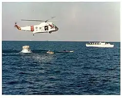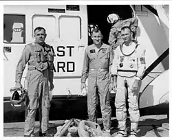 1965 AIRSTA helicopters routinely hoist Gemini astronauts, undergoing egress training from their space capsules in the Gulf during the drills.