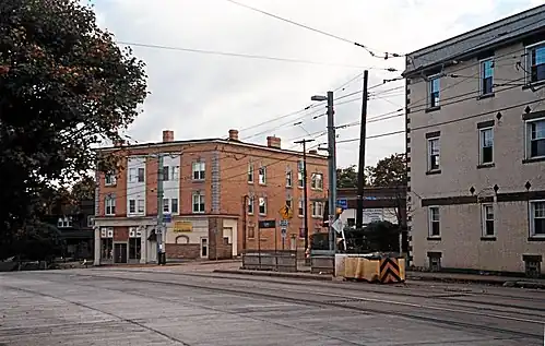 Coast was a station on the Port Authority of Allegheny County's light rail network, located in the Beechview neighborhood of Pittsburgh, Pennsylvania. The street level stop was located on a small island platform in the middle of Broadway Avenue, through which The T traveled along former streetcar tracks. The station served a densely populated residential area through which bus service was limited because of the hilly terrain.
