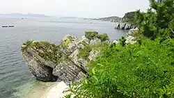 Coastal erosion is the loss or displacement of land, or the long-term removal of sediment and rocks along the coastline due to the action of waves, currents, tides, wind-driven water, waterborne ice, or other impacts of storms.[1][2] The landward retreat of the shoreline can be measured and described over a temporal scale of tides, seasons, and other short-term cyclic processes.[3] Coastal erosion may be caused by hydraulic action, abrasion, impact and corrosion by wind and water, and other forces, natural or unnatural.[3]