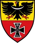 Wrocław became a German-speaking city by 1242 and was known as Breslau. It became part of the Kingdom of Prussia in 1742 and the German Empire in 1871. In 1938, the coat of arms was abolished,[1] as the Nazi authorities viewed it as too Slavic. It was replaced by a "purely German" coat-of-arms, a shield parted horizontally, with a black Silesian eagle on the top without Christian crosslet on the breast, and an Iron Cross in red field on the bottom. This was abolished after Breslau became part of Poland in 1945 as Wrocław.