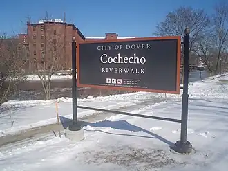 The Cochecho River (incorrectly Cocheco River) is a tributary of the Piscataqua River, 38.3 miles (61.6 km) long,[1] in the U.S. state of New Hampshire. It rises in northern Strafford County and runs southeastward, through the town of Farmington and the cities of Rochester and Dover, where it provides hydroelectric power. Below the center of Dover, the river is tidal and joins the Salmon Falls River at the Maine border to form the Piscataqua. Significant tributaries include the Ela River, the Mad River, and the Isinglass River.