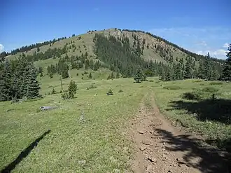 The Cochetopa Hills[3] are a mountain range on the Continental Divide in Saguache County, Colorado, United States. The Cochetopa Hills are a sub-range of the San Juan Mountains and are located in the Gunnison National Forest and Rio Grande National Forest. The range extends from Marshall Pass southwest 50 miles (80 km) along the winding crest of the divide to Saguache Park. The high point of the Cochetopa Hills is Long Branch Baldy at an elevation of 11,974 feet (3,650 m).[2][4][5]