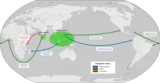 Chronological dispersal of Austronesian peoples across the Indo-Pacific[46][47]