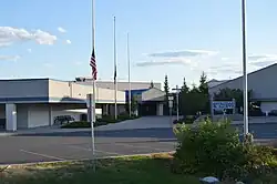 Coeur d'Alene High School (CDA High School), 5530 North Fourth Street (Kootenai County) Coeur d'Alene, Idaho, (founded 1903, current building built 1969), (photo taken in August 2015) | |