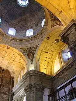 Built by Pedro Marlote and Juan de la Sierra between 1594 and 1603, the great escalator is characterized for its 3 meters wide and its one piece steps. The structure was made with such a strong granite, that the state of it is almost perfect after centuries of used. One of the main characteristics that make this escalator unique is the way it was built. The escalator has no central support, resting on the side walls of the building. Under the escalator, in the arcade, there are still rests of the map, the architects draw as a reference to build the escalator.[1][5]