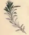 Sprig of Cerastium arvense with mined leaves and a larva-case attached
