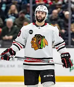 On July 13, Blackwell signed a two-year, $2.4 million contract with the Chicago Blackhawks as a free agent.[12][13] Blackwell appeared in 53 games for the Blackhawks before suffering a season-ending sports hernia in March 2023. His recovery was derailed by complications, which resulted in him returning later than expected in December 2023.[14] Blackwell was Chicago's nominee for the Masterton Trophy, which is awarded to the league's player who "best exemplifies perseverance, sportsmanship, and dedication to hockey."[15]