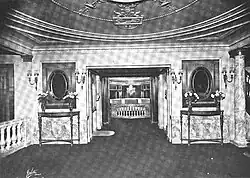 Built in 1920 as B.S. Moss' Coliseum Theatre, the venue was originally a movie palace designed by architect Eugene De Rosa.[4] Marble interiors were done by Voska, Foelsch, & Sidlo Inc, terra cotta by New York Architectural Terra-Cotta Company, ornamental plastering by Architectural Plastering Company, Inc., Peter Clark installed the rigging system, windows supplied by S. H. Pomeroy Company, Inc., Sexauer & Lemke Inc. installed the ornamental iron work, draperies and wall coverings by Louis Kuhn Studio, mirrors & console tables by Nonnenbacher & Co, and the pipe organ was installed by M. P. Moller.[5]