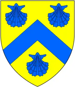 Edmund Tremayne (d.1582), next younger brother, of Collaton, a clerk to the Privy Council of Queen Elizabeth I, who rebuilt the manor house at Collacombe, which survives today.[38] Evidence of his work includes the surviving large heraldic plaster overmantel to the fireplace in the great hall,[39] with date "1574".[40] He married Ulalia St Leger, a daughter of Sir John St Leger (d.1596) of Annery, Monkleigh in Devon. She survived him and in 1583 remarried to Tristram Arscott (1544–1621) of Launcells,[41][42] the son and heir of Richard Arscott (d.1578), the 4th son of John Arscott (d.1541) of Arscott[43] in the parish of Holsworthy, Devon. Her father sold the manor of Annery to Tristram Arscott.