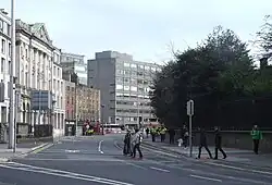 College Street (Irish: Sráid an Choláiste[1]) in Dublin follows the curve of Trinity College. It runs from College Green in the west to Pearse Street in the east.[2][3] It lies in the "Mansion House A" Electoral Division of Dublin.[4] It was described by the prolific engraver Mary Milner as "one of the most spacious of the noble thoroughfares of the Irish metropolis."[5]