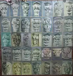The works to cover the seal took nearly ten years, from 1995–2005,[5] with Fussenich stating that "covering the seal took as much effort as building an entire village church".[11] Sandstone from Oberkirchen was chosen for the repairs, as it was the same type as was used for the initial construction of the tower. Stonemasons at the Cathedral Workshop chiselled 250 tonnes of stone into 823 blocks, with 124 of these being elaborate sculptural finials, pinnacles, and capitals. Stonemasons Willi Bauer and Steinmetz Marcus Schroer created these structures, as well as floral decorative pieces, based on modern designs, rather than from historical plans. The plants depicted include clover, thistle, hops, bougainvillea, and black-eyed susan, and are the most recent pieces of stonework completed at the cathedral. In addition to these, the figures of Saints Cordula, Christopher, Catharine of Alexandria, and Nicholas were all recreated from 18th century plaster models by Peter Fuchs.