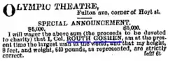 - ^ "Barnum's American Museum". The New York Times. New York, New York. 26 November 1863.
