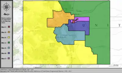 Table of United States congressional district boundary maps in the state of Colorado, presented chronologically.[7] All redistricting events that took place in Colorado between 1973 and 2013 are shown.