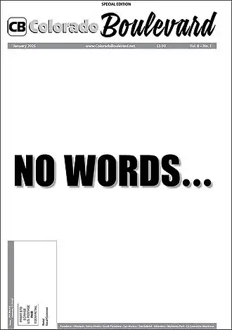 In the wake of the deadly and disastrous Eaton Fire on January 7, 2025, that decimated the town of Altadena, Colorado Boulevard published a black-and-white Special Edition devoted to the fire's aftermath. In the days immediately after the fire, the writing team edited the website with up-to-the-minute live updates[8] immediately relevant to the community, like what streets the National Guard closed off and what areas had running water.