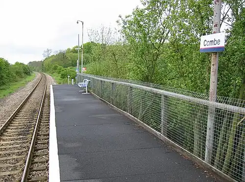 It was opened as Combe Halt by the Great Western Railway in 1935, originally having two platforms.[1] In 2012, it was equipped with the modern Customer Information display screen now found on most First Great Western stations, plus an automatic train announcement system.